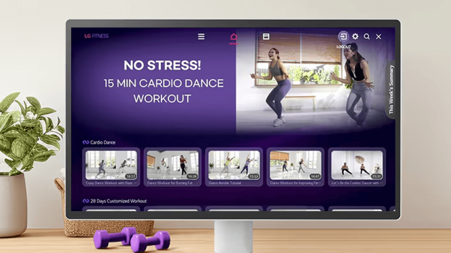 Przekształć swój salon w osobistą siłownię dzięki LG Fitness. Korzystaj z szerokiej gamy treningów, śledź swoje postępy i osiągaj cele, a wszystko to z wygodnej kanapy.
