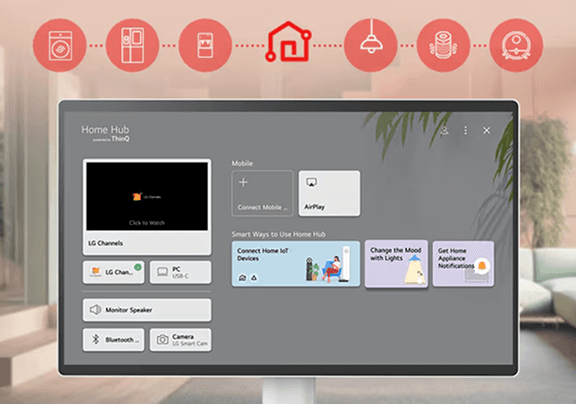 Dzięki aplikacji ThinQ możesz łatwo sterować urządzeniem zdalnie za pomocą poleceń głosowych za pośrednictwem Alexy, co sprawia, że monitor smart służy nie tylko jako wyświetlacz. Staje się on centralnym centrum rozrywki i produktywności, podnosząc ogólne wrażenia multimedialne. Wszystko to wymaga jedynie pilota Magic.