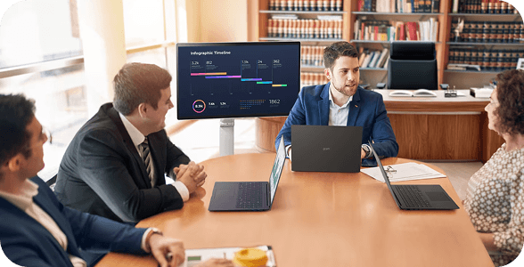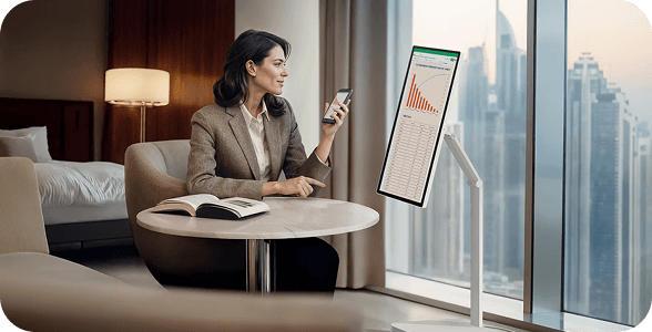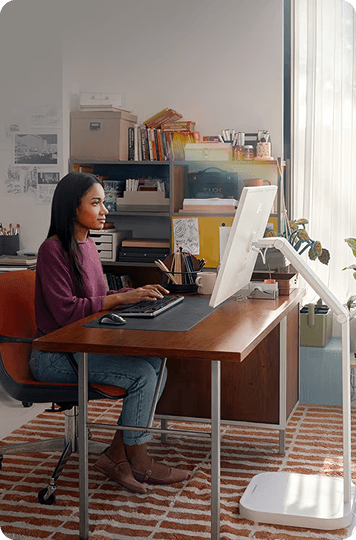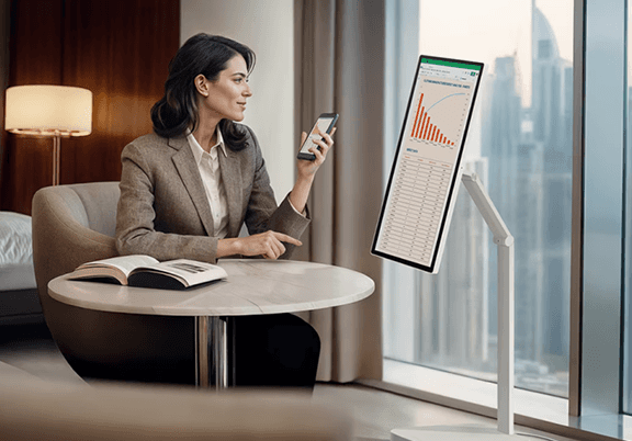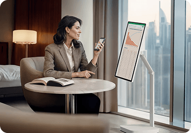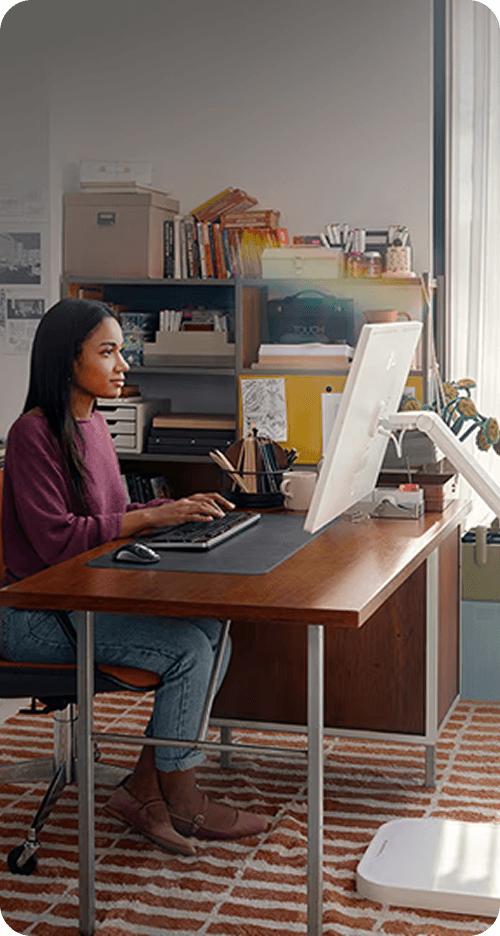 Doświadcz swobody projektowania swojego biznesu. Wszechstronne funkcje monitora, regulowana podstawa i rozszerzona łączność sprawiają, że jest on idealnym towarzyszem, płynnie dostosowującym się do Twoich potrzeb w każdym środowisku pracy. Niezależnie od tego, czy pracujesz w biurze, w siedzibie klienta, czy zdalnie, to rozwiązanie pozwala pracować mądrzej, szybciej i wydajniej.