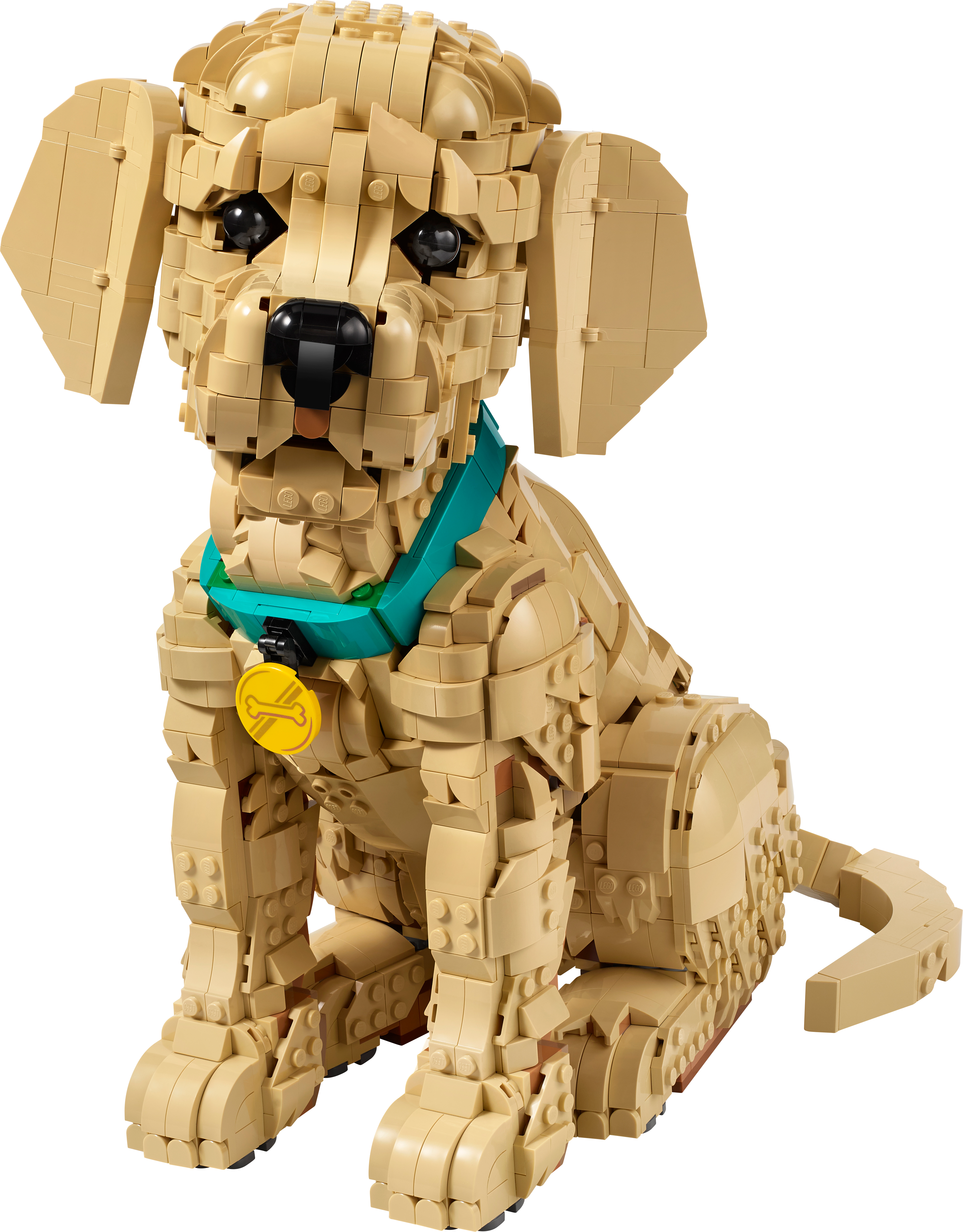 Figurkę można ustawiać w różnych pozycjach — regulować głowę, uszy i ogon, a także unosić przednią łapkę, by nadać jej jeszcze więcej wyrazu. Otwierany pyszczek z białymi ząbkami i różowym językiem dodaje realizmu, a ozdobna obroża z zawieszką podkreśla charakter modelu. Budowanie ułatwia aplikacja LEGO Builder, która umożliwia obracanie i powiększanie modelu w 3D oraz śledzenie postępów dzięki szczegółowym instrukcjom cyfrowym.