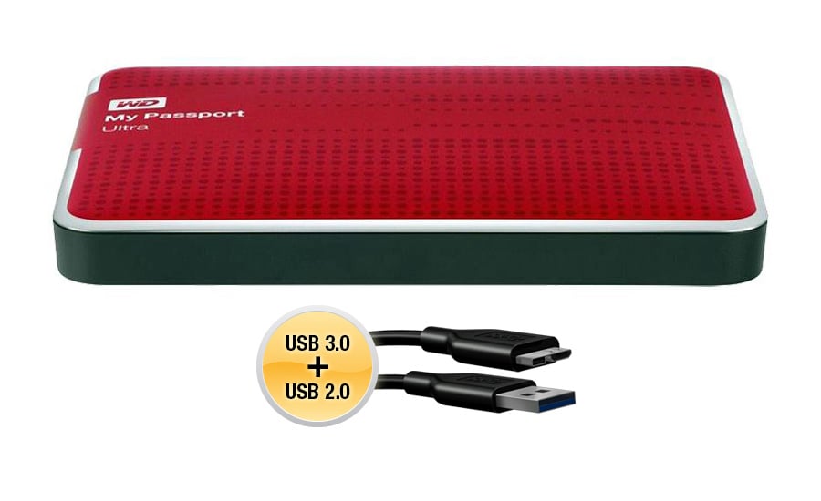 Po podłączeniu do portu USB 3.0 dysk My Passport Ultra umożliwia błyskawiczne otwieranie i zapisywanie plików. Przesyłanie danych odbywa się do 3 razy szybciej niż przez interfejs USB 2.0.* *Wydajność zależy od konfiguracji sprzętowej i systemu operacyjnego.