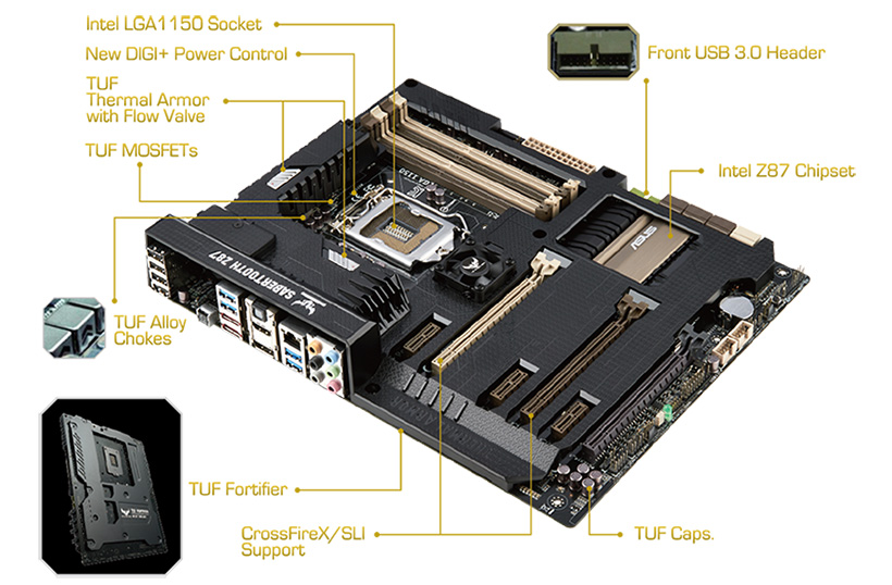 | Płyta główna TUF Intel® Z87 zapewnia większą stabilność dzięki wzmocnionej konstrukcji i elastycznemu systemowi chłodzenia | ||