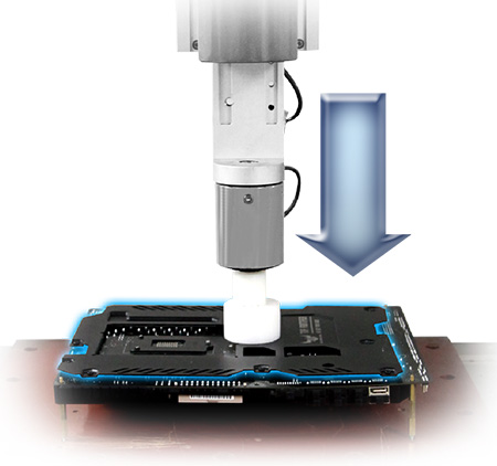 Prevent Bending Chroni przed wygięciem spowodowanym ciężarem komponentów TUF Fortifier może sobie poradzić z wysokim obciążeniem systemu chłodzenia i kart graficznych. Umożliwia instalację nawet największych i najcięższych komponentów, bez ryzyka uszkodzenia obwodu drukowanego płyty głównej. |