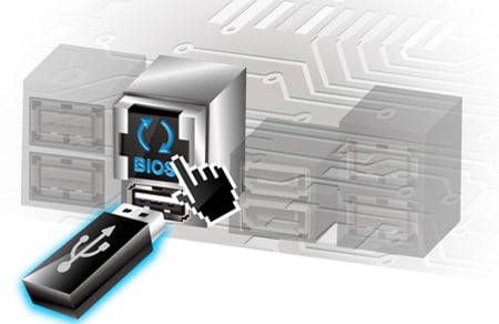 USB BIOS Flashback Proste sprzętowe wgrywanie BIOSu Sprzętowe rozwiązanie USB BIOS Flashback umożliwia użytkownikom wgrywanie nowych wersji UEFI BIOS nawet przy braku procesora, czy pamięci. Wystarczy podłączyć urządzenie magazynujące zawierające plik BIOS, wcisnąć przycisk BIOS Flashback i przytrzymać go przez 3 sekundy przy podłączonym zasilaniu. Bezproblemowa i wygodna aktualizacja! |