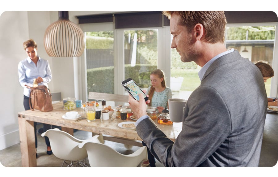 Korzystaj z bieżących informacji drogowych odbieranych przez smartfon, przez cały okres używania urządzenia nawigacyjnego. Otrzymuj bieżące informacje o miejscach występowania opóźnień i o dostępności szybszej trasy.