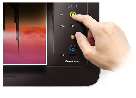 Łatwość zarządzania Zaprojektowana z myślą o łatwej i intuicyjnej obsłudze drukarka C410W oszczędza cenny czas i siły użytkownika. Naciśnij przycisk Eco i natychmiast zacznij oszczędzać toner, papier i energię. Tryb ten umożliwia drukowanie kilku stron na jednym arkuszu, drukowanie w skali szarości oraz pomijanie pustych stron. Szybko i bezpiecznie połącz się z siecią bezprzewodową, naciskając przycisk WPS (konfiguracja chroniona Wi-Fi) na drukarce. |