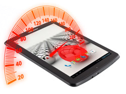 Wbudowany G-sensor (akcelerometr) z zaawansowaną funkcją 3D Wbudowany G-sensor (inna nazwa akcelerometr) umożliwia sterowanie ekranem za pomocą ruchów w których użytkownik ustawia tablet pod odpowiednim kątem nachylenia. Użytkownik dostaje możliwość ustawiania ekranu w pionie lub w poziomie poprzez odpowiednie ustawienie tabletu dłonią, tak samo ma możliwość sterowania gestami dłoni w grach oraz programach wykorzystujących funkcję akcelerometru. |
