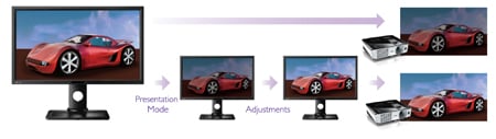 Tryb Present Pozwól - niech Twój monitor i projektor współgrają ze sobą.