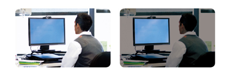 • Automatycznie przyciemnia ekran monitora w słabo oświetlonych lub przy ciemnym ustawieniu oświetlenia.