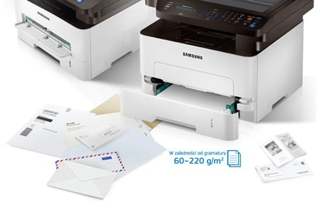 Drukarka Samsung Xpress M2875FD jest odpowiedzią na wszystkie twoje potrzeby w zakresie drukowania. To niewielkie, ale wszechstronne urządzenie może drukować na nośnikach o gramaturze aż do 220 g/m2, w tym na papierze, etykietach, kartkach okolicznościowych, kopertach oraz folii do rzutnika. Użytkownik może z łatwością wybrać rodzaj papieru z podajnika wielofunkcyjnego, co sprawia, że urządzenie jest nie tylko wygodne w obsłudze, ale również wszechstronne.