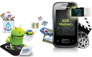 Bogactwo inteligentnych doświadczeń Korzystaj w pełni z możliwości swojego telefonu. Ten model został stworzony z myślą o wysokich parametrach pracy: od platformy Android™ Gingerbread 2.3, po intuicyjny interfejs TouchWiz, GALAXY Pocket jest naszpikowany systemami, które wzbogacą wachlarz Twoich możliwości. Bez względu na to, czy korzystasz z usług mobilnych Google, czy pobierasz darmowe aplikacje z serwisu Samsung Apps, dzięki pamięci 3 GB masz mnóstwo miejsca na wszystko: muzykę, filmy, zdjęcia i aplikacje! |