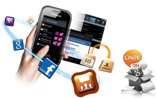 Zawsze w kontakcie GALAXY Pocket to Twoja bezpośrednia linia do kontaktów ze znajomymi – model ten wyposażony jest w aplikację Social Hub, która jest odpowiedzią na współczesne potrzeby komunikacyjne. Wszystko jest zintegrowane, dzięki czemu możesz wysyłać e-maile, wiadomości, przeglądać strony w serwisie Facebook i nowe wpisy w serwisie Twitter, posługując się listą kontaktów zapisanych w urządzeniu. Możesz również skorzystać z aplikacji ChatOn i jeszcze łatwiej utrzymywać kontakt ze znajomymi, dzięki funkcjom takim, jak udostępnianie multimediów, rozmowy grupowe i animowane wiadomości. (*Aplikację ChatOn można pobrać w serwisie Samsung App). |