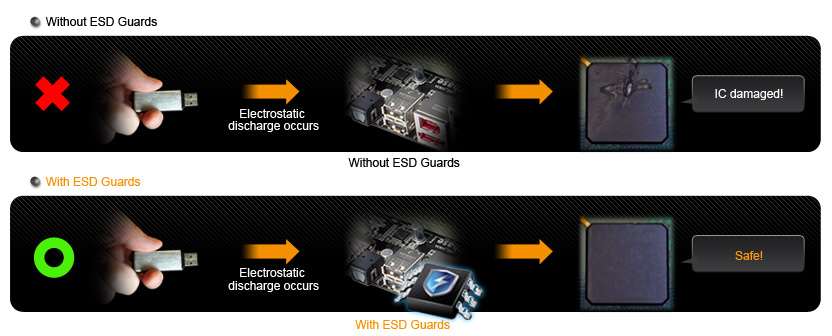 Osłona ESD Skuteczna ochrona przed wyładowaniami elektrostatycznymi Wyładowania elektrostatyczne (ESD) mogą pojawić się znikąd, a ich szkodliwość jest często bagatelizowana. Ekskluzywny układ ASUS ESD Guard i osłona I/O zapewniają czterokrotnie lepszą ochronę, zwiększając żywotność komponentów. ![]() |