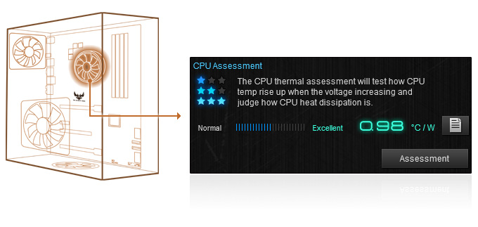 Ocena termiczna Ocena termiczna i precyzyjne sterowanie wentylatorem Ocena termiczna Thermal Assessment pozwala określić moment, gdy strefa CPU będzie potrzebowała lepszego chłodzenia; dzięki temu sterowanie wentylatorem systemu staje się dokładniejsze, ponieważ opiera się na informacji o rzeczywistej temperaturze. Czujniki rejestrują temperaturę CPU, można więc dopasować ustawienia wentylatora do sposobu użytkowania komputera. ![]() |