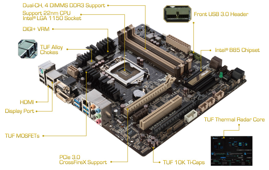 | Sięgnij po niezawodność TUF i chłodzenie na płycie głównej Intel®B85 mATX | ||