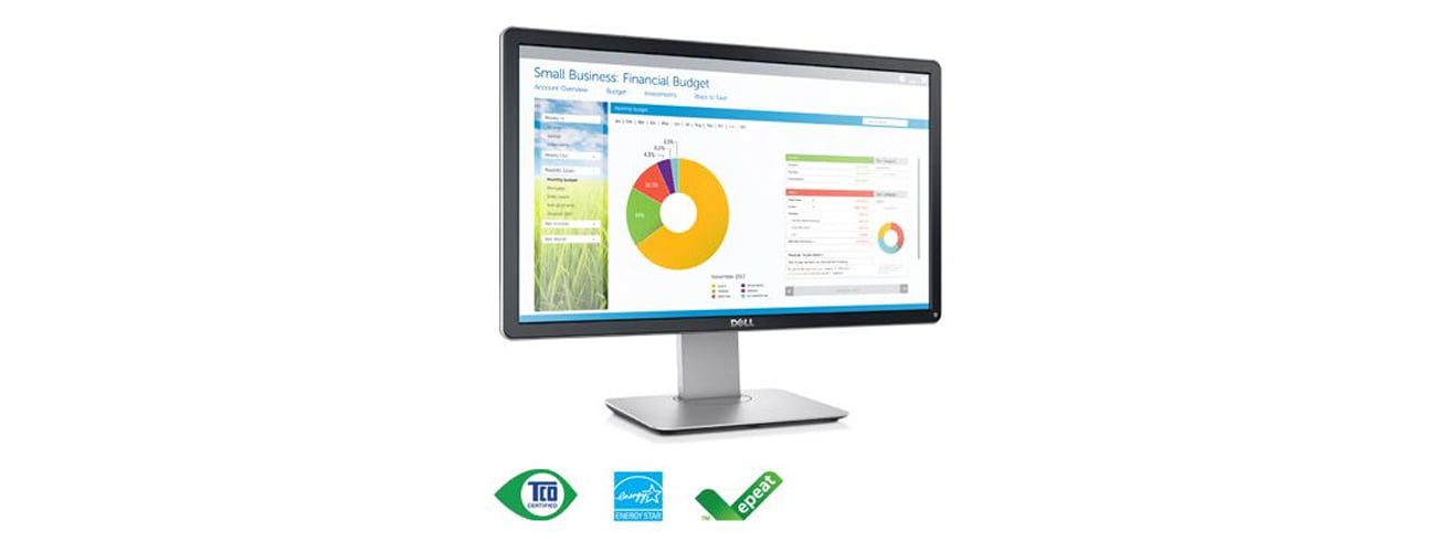 Monitor P2414H nie zawiera związków BFR/PVC (z wyjątkiem zewnętrznych kabli), a jego obudowa zawiera ponad 25 procent plastiku pochodzącego z recyklingu .