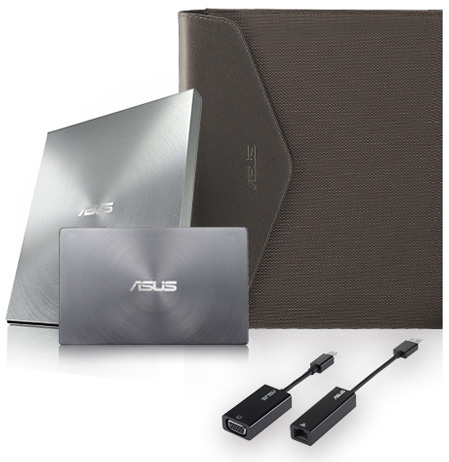 Do Zenbook stworzono komplet akcesoriów, dzięki którym użytkownik może maksymalnie wykorzystać możliwości przenośnego designu urządzenia oraz jego wysokiej wydajności. Stylowy i wytrzymały pokrowiec zabezpiecza Zenbook, kiedy jesteś w podróży, a wielonapięciowy zasilacz jest na tyle mały, że mieści się w kieszeni. Dostępny jest również port USB Ethernet, który przyda się, gdy w zasięgu nie ma żadnej sieci Wi-Fi, a Mini DisplayPort umożliwia bezproblemowe podłączenie stacjonarnego monitora. |