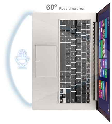 Najlepszy dźwięk pochodzi z dużych głośników, jednak niewielkie rozmiary Zenbook sprawiły, że stanęliśmy przed dużym wyzwaniem. Poradziliśmy sobie z nim wykorzystując znakomitą akustykę sztywnej, aluminiowej obudowy ze specjalnie opracowanymi komorami głośnikowymi, które wypełniliśmy potężnymi głośnikami, które razem tworzą bogaty dźwięk, który jest dużo bardziej donośny, niż mogłoby się wydawać.