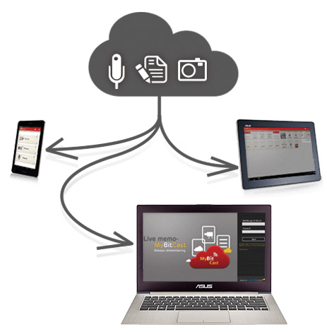 Intuicyjna aplikacja MyBitCast synchronizuje wiadomości poprzez WebStorage. Każda myśl i idea może zostać zapisana i łatwo udostępniona. Można uzyskać do niej dostęp z dowolnego miejsca. MyBitCast pozwala na robienie notatek, zdjęć oraz nagrań i zamieszczanie ich w chmurze.