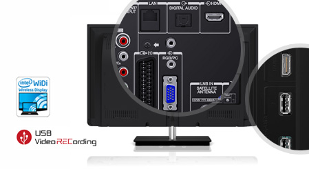 Bez względu na to, czy chcesz podłączyć konsolę do gier lub laptopa, oglądać zawartość z telefonu lub tabletu czy nagrywać ulubione pozycje do obejrzenia później, telewizor serii L4 zaspokoi Twoje potrzeby. Wyposażono go w dwa porty USB i cztery porty HDMI, w tym jeden port HDMI z obsługą standardu MHL. Do funkcji nagrywania wideo przez USB* na zewnętrznym dysku twardym dołączył najnowszy zintegrowany interfejs WiDi, który umożliwia podłączenie dowolnego laptopa wyposażonego w interfejs WiDi bez użycia kabla. |