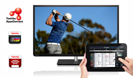 Firma Toshiba oferuje szereg aplikacji przeznaczonych na smartfony i tablety, które zwiększają możliwości tych urządzeń. Dzięki aplikacji Toshiba Remote (z obsługą systemów iOS i Android) urządzenie staje się w pełni funkcjonalnym pilotem do telewizora, a dodatkowo oferuje możliwość łatwego wprowadzania tekstu oraz sterowania kursorem przeglądarki Open Browser. Oprócz aplikacji Remote firma Toshiba opracowała też dostępną dla tabletów aplikację Toshiba MediaGuide (z obsługą systemów iOS i Android). Dzięki aplikacji MediaGuide możesz przeszukiwać programy telewizyjne na urządzeniu zamiast robić to na telewizorze. Nie musisz więc przerywać oglądania podczas przeszukiwania zawartości i informacji o programach, ustawiania przypomnień oraz porządkowania nagrań. |