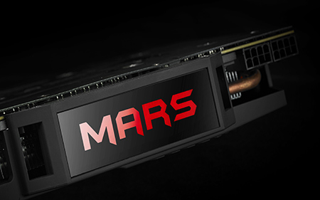 | Dioda LED MARS Pulsuje na czerwono, gdy karta jest aktywna. Wydajność karty Mars 760 przekroczy Twoje oczekiwania, a jej wygląd powali. Dioda LED pulsuje na czerwono, kiedy ROG jest w użyciu – uwaga! To światło ostrzegawcze wybitnego produktu! | ![]() | |