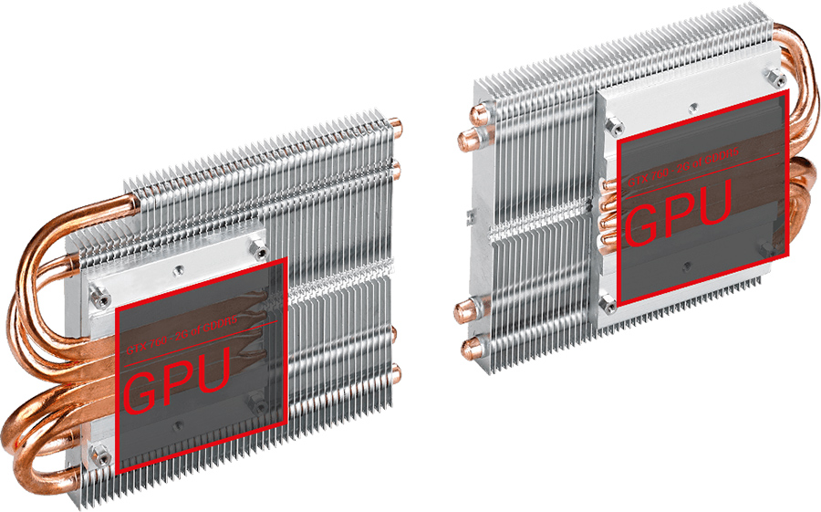 | DirectCU II O 20% chłodniejsza. Dalece cichsza. Autorska technologia DirectCU II umieszcza 8 wysokoprzewodzących miedzianych przewodów chłodzących w bezpośrednim kontakcie z obydwoma procesorami graficznymi. Pozwala to na obniżenie temperatury o 20% i cichsze działanie w porównaniu z GTX 690. | ||