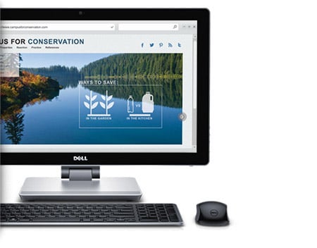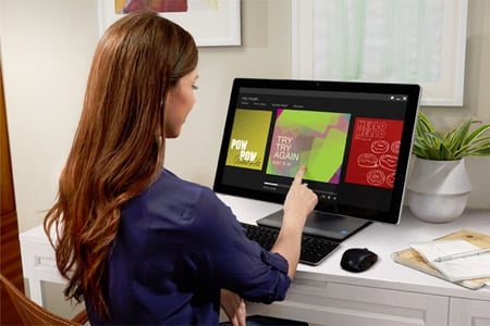 Pod takim kątem, jaki chcesz Inspiron 23 opiera się na elastycznym ramieniu, które można obracać w zakresie od 90 do 180 stopni, aby ekran był ustawiony w pionie lub poziomie. Przechylasz ekran do przodu, gdy analizujesz arkusz kalkulacyjny, odchylasz go do tyłu, gdy oglądasz film, lub kładziesz całkowicie na płasko, gdy oglądasz pokaz slajdów razem z innymi osobami. Płynna nawigacja Wielodotykowy wyświetlacz jest przystosowany do obsługi systemu Windows 8 i błyskawicznie reaguje na każde stuknięcie, przesunięcie, przeciągnięcie i obrót oraz zsunięcie i rozsunięcie palców, więc można sprawnie poruszać się po stronach internetowych. |