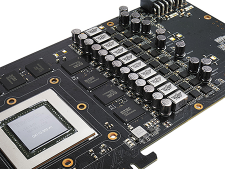 DIGI+ VRM z kondensatorami Black Metallic O 30% mniej hałasu i 5-krotnie większa wytrzymałość Karta Poseidon GTX 780 wykrozystuje 10-fazowy system Super Alloy Power oraz moduł regulacji napięcia DIGI+ VRM. DIGI+ VRM to cyfrowy system regulacji napięcia, który zapewnia duży zakres przetaktowywania i regulacji osiągów przy jednoczesnej redukcji szumu zasilania o 30%. Wraz z Super Alloy Power kartę wyposażono w wytrzymałe dławiki i tranzystory, które wytrzymują większe obciążenia i temperatury. Poseidon GTX 780 posiada też japońskie kondensatory black metallic, które oferują o 20% większą wytrzymałość na wysokie temperatury i 5-krotnie dłuższą żywotność. |