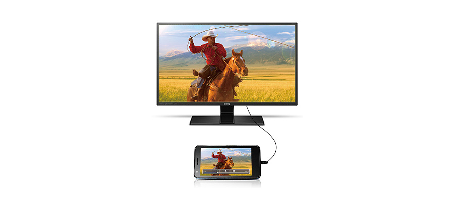 Obsługa MHL umożliwia przesyłanie treści z urządzenia mobilnego wspierającego wspomnianą technologię. Na ekranie monitora zostaje wówczas wyświetlona zawartość uruchomiona na smartfonie zastępując komputer osobisty.Dzięki tej funkcji, można przeglądać strony internetowe, oglądać filmy, grać w gry, a nawet przejść przez różne dokumenty na pełnym rozmiarze ekranu - 24" lub 27" - bez konieczności włączania komputera.
