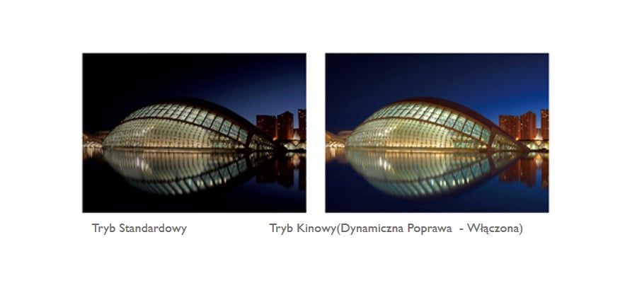 Dzięki ekskluzywnej technologii wspomagania kolorów firmy BenQ, włączony Tryb Kinowy automatycznie przetwarza zawartość obrazu wideo dostrajając go do perfekcji, tak więc to co będziesz naprawdę oglądał na ekranie monitora to dynamiczne doświadczenia prawdziwego kina.