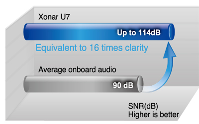 Ciesz się czystą konwersją cyfrowo-analogową! Xonar U7 Echelon Edition posiada przetwornik cyfrowo-analogowy Cirrus Logic CS4398, który zapewnia czystość dźwięku dzięki znakomitemu współczynnikowi sygnału do szumu (SNR) i niskiemu współczynnikowi zniekształceń harmonicznych (THD). Mówiąc najogólniej, dobre komponenty przekładają się na dobry dźwięk - Xonar U7 Echelon Edition wzmacnia każdy detal dźwięku! |