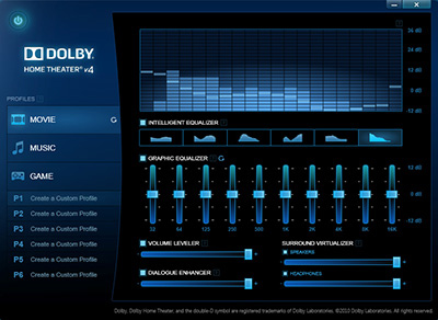 Realistyczny, ulepszony dźwięk surround z nowym Dolby Home Theater v4 Dekoder surround ― konwertuje 2-kanałowe źródła dźwięku na sygnały wielokanałowe. Surround virtualizer ― zapewnia doskonały, wirtualny dźwięk surround w standardowych słuchawkach i głośnikach stereofonicznych. Intelligent equalizer ― umożliwia użytkownikom dynamiczną regulację tonów Dialogue enhancer ― znacznie poprawia jakość głosu podczas komunikacji w grze Volume leveler ― umożliwia utrzymanie stałego poziomu głośności we wszystkich źródłach dźwięku |