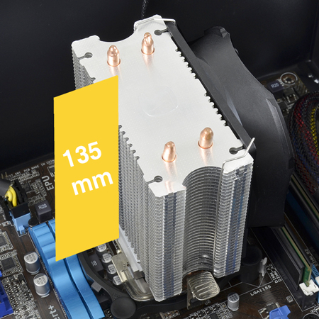 Osobiście montowałem go na LGA 1150 i miałem lekkie problemy z umieszczeniem kabli ,ale to było spowodowane małą obudową ,a tam wszystko ok. Temperatury na boxowym 34 stopnie C przy 1200 prm ,a na tym 30 C przy obrotach 800 prm widać różnicę :)