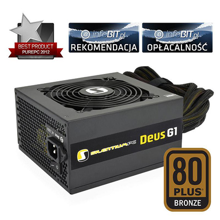 Deus G1 500W 80Plus Bronze SilentiumPC Deus to nowoczesny zasilacz przeznaczony do rozbudowanych zestawów komputerowych posiadających do dwóch kart graficznych. Zasilacz te posiada długie, w pełni oplecione na czarno okablowanie, komplet rozłączalnych złącz (4+4pin EPS, 6+2pin PCIE, 20+4pin MOBO) oraz elegancką, czarną, obudowę. Wysoka sprawność pozwoliła na obniżenie hałasu generowanego przez zasilacz, którego wentylator, przy niskim obciążeniu, pracuje wyjątkowo cicho, a zaawansowany system sterowania obrotami wentylatora sprawia, że nawet przy obciążeniu hałas jest ograniczony do minimum. |