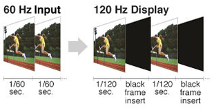 Wyświetlanie obrazu z częstotliwością 120 Hz pozwala na wstawianie po każdej klatce obrazu klatki wypełnionej czernią, co powoduje eliminację powstawania artefaktów i rozmyć podczas wyświetlania obrazów ruchomych. Podczas pracy z sygnałem z przeplotem funkcja pseudo-przeplotu minimalizuje powstawanie artefaktów, dzięki czemu ruchome obrazy są wyświetlane na monitorze LCD równie „gładko” jak na urządzeniach wyposażonych w tradycyjny kineskop.