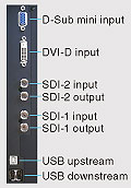 Monitor wyposażony jest w komplet złącz sygnałowych, obejmujących gniazda BNC × 2 (SD-SDI/HD-SDI × 2 lub dual-link SDI × 1) do transferu nieskompresowanego materiału wideo, DVI-D oraz D-Sub do połączenia zarówno ze studyjnymi źródłami sygnału, jak i komputerem PC. Obsługiwane są następujące standardy sygnału SDI: YCbCr: 4:2:2, YCbPr: 4:2:2,YPbPr: 4:4:4 oraz RGB 4:4:4.