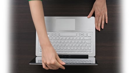 Nieskazitelny wygląd Smukły notebook gwarantujący niezwykłe doznania. Stworzony z myślą o pracy bez przewodów. Minimalistyczna stylistyka ułatwia obsługę. Gładkie narożniki sprawiają, że z łatwością włożysz i wyjmiesz swoje VAIO z torby. Tryb ClearAudio+, wykorzystujący szereg technologii audio Sony, pozwala z łatwością uzyskać niezwykle czysty, klarowny dźwięk do filmów i gier, a także przy słuchaniu muzyki. |