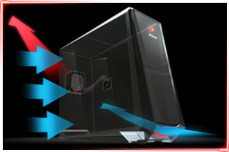 Chłodzenie powietrzem i cieczą Komputer TYTAN G70 posiada 10-kierunkowy system wentylacyjny wykorzystujący 10 wentylatorów. Tryb Turbo Gear automatycznie otwiera dostęp do sześciu przednich i dwóch tylnych wentylatorów. Pracują one wraz ze znajdującymi się na dole i wewnątrz obudowy dwoma wentylatorami, ze zintegrowanym systemem chłodzenia płynnego i setkami specjalnie rozmieszczonych otworów wentylacyjnych, zapewniając niezwykle wydajne zarządzanie temperaturą. Dzięki tym rozwiązaniom komputer TYTAN G70 idealnie nadaje się na maratony gier, zapewniając przy tym dłuższą żywotność komponentów. |