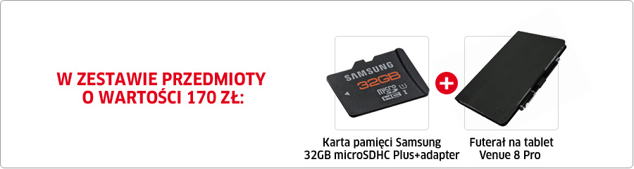 Pełna wydajność w Twojej dłoni Niewielki, lecz wydajny: niezależnie od tego, czym się zajmujesz, tablet Dell Venue 8 Pro ułatwia szybką pracę dzięki procesorowi Intel® Atom™ Z3740 (w najlepszej konfiguracji czterordzeniowy model 1,8 GHz). Mobilność, produktywność i funkcje współpracy systemu Windows: pełna funkcjonalność systemu Windows 8.1 w dowolnym miejscu. Zarówno w trasie, jak i na wakacjach tablet Dell Venue 8 Pro zapewnia stały dostęp do pakietu Office 2013 dla Użytkowników Domowych i Uczniów. Aplikacje systemu Windows 8: dostępne aplikacje oferują wszystkie potrzebne funkcje — od zarządzania kontaktami i udostępniania zdjęć po obsługę projektów i stałe utrzymywanie kontaktu. Tablet Dell Venue 8 Pro umożliwia korzystanie ze Sklepu Windows i wszystkich aplikacji, których używasz na komputerze z systemem Windows 8. Bateria na cały dzień pracy: zrób sobie seans filmowy lub swobodnie wykonuj zadania w biurze bez konieczności podłączania kabla dzięki baterii wystarczającej na nawet 10 godzin pracy. |