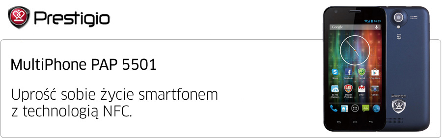 To takie proste! Dotknij czystej magii z Prestigio Multiphone 5501: Technologia NFC umożliwia udostępnianie materiałów, uruchamianie programów oraz aktywację różnych funkcji telefonu jednym dotknięciem. Będziesz zaskoczony prędkością działania urządzenia i natychmiastowej reakcji na wszelkie działania użytkownika – wszystko dzięki szybkiemu dwurdzeniowemu procesorowi. Długa żywotność baterii 2000mAh i szybki internet zapewni Ci dodatkową mobilność i pozwoli pozostać w kontakcie, zawsze wtedy kiedy tego potrzebujesz. Wszystkie funkcje zamknięte w jednej nowoczesnej, wykonanej z wysokiej jakości materiałów obudowie. Wewnątrz pudełka znajdziesz także stylowe etui business active cover. |