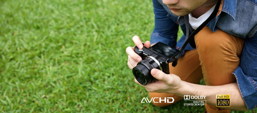 Nagrywanie filmów Full HDNaciśnięcie przycisku MOVIE rozpoczyna zapis pięknego filmu HD w formacie AVCHD. Nagrywanie w trybie 50i zapewnia maksymalną płynność scen akcji, a w trybie 25p nadaje filmowi tradycyjny, kinowy wygląd. |