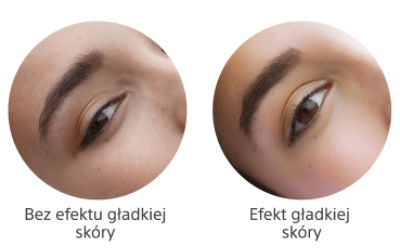 Efekt „gładka skóra”Efekt „gładka skóra” koryguje zmarszczki i ziemisty odcień karnacji, dzięki czemu fotografowane osoby zawsze dobrze wychodzą na zdjęciach. |