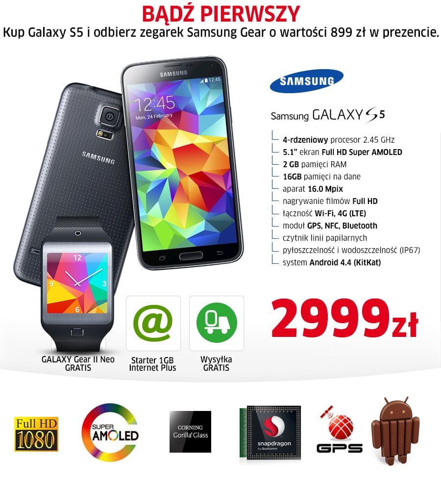 Odporny na kurz i wodę - jeszcze solidniejsze wykonanie Według ogólnoświatowego certyfikatu IP67, smartfon GALAXY S5 jest odporny na mokre dłonie, deszcz, polewanie wodą, piasek i kurz. Jest to smartfon zabezpieczony na każdą okoliczność. |