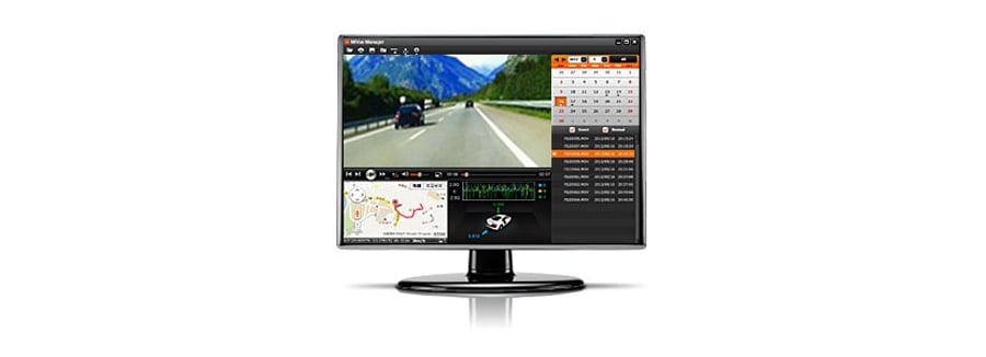 Intuicyjny interfejs pozwala na przeglądanie i odtwarzanie filmów z dowolną prędkością. Nagrywa kierunek jazdy oraz zapisuje wstrząsy do analiz powypadkowych. Pozwala łączyć nagrane filmy i udostępniać je w sieciach społecznościowych, takich jak Facebook® czy YouTube™.