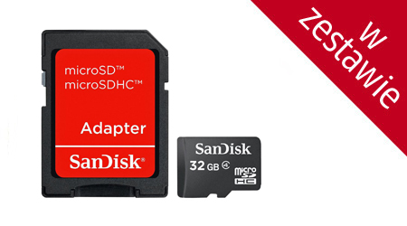 Karta pamięci microSDHC (Secure Digital High Capacity) o pojemności 32 GB. W związku z małymi wymiarami (wielkość zbliżona do jednogroszówki) karta charakteryzuje się bardzo niskim zużyciem energii. Przeznaczona jest do urządzeń mobnilnych obsługujących karty microSDHC oraz za pomocą adaptera m.in. aparatów i kamer cyfrowych obsługujących format SDHC (logo SDHC na obudowie urządzenia lub jego opakowaniu).