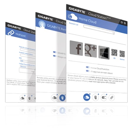 GIGABYTE Cloud Station™ to kilka unikatowych aplikacji pozwalające na komunikację, dzielenie się zasobami oraz kontrolowanie komputerem za pomocą smartfona lub tabletu przez połączenie bezprzewodowe. |
