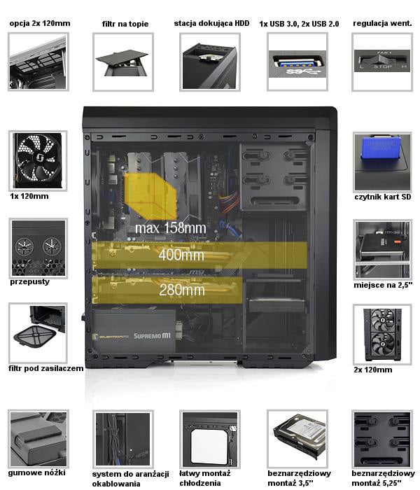 @X-KOM.PL - na zdjęciach prezentowany jest inny model - obudowa ma trzy przełączniki regulacji wentylatorów i nie ma (niestety) wejścia na kardy SD.