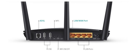 Uniwersalny port LAN/WAN Router Archer D5 pozwala na nawiązanie połączenia z Internetem poprzez port ADSL lub poprzez port Ethernet WAN (EWAN), umożliwiając użytkownikom korzystanie z różnorodnych łącz internetowych, takich jak łącza ADSL, modem kablowy lub modem światłowodowy. Ułatwia to użytkownikom zmianę używanego typu łącza internetowego, jeżeli zajdzie taka potrzeba. |