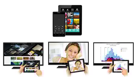 Dedykowana aplikacja producenta dla urządzeń mobilnych opartych o systemy Android, iOS i Windows pozwoli Ci na jeszcze więcej. Używaj swojego urządzenia jako pilota do telewizora, zarządzaj i steruj wyświetlaniem z telewizora na swoje urządzenie, zarządzaj wszystkimi swoimi plikami na dużym ekranie, udostępniaj filmy lub kamerę w trakcie wideorozmów.